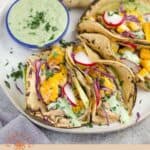 - Tarragon Cream Sauce – This has been our favorite garnish all summer. We started using it on our smashed potatoes, but discovered it’s fantastic on so much more, including these corn tacos!