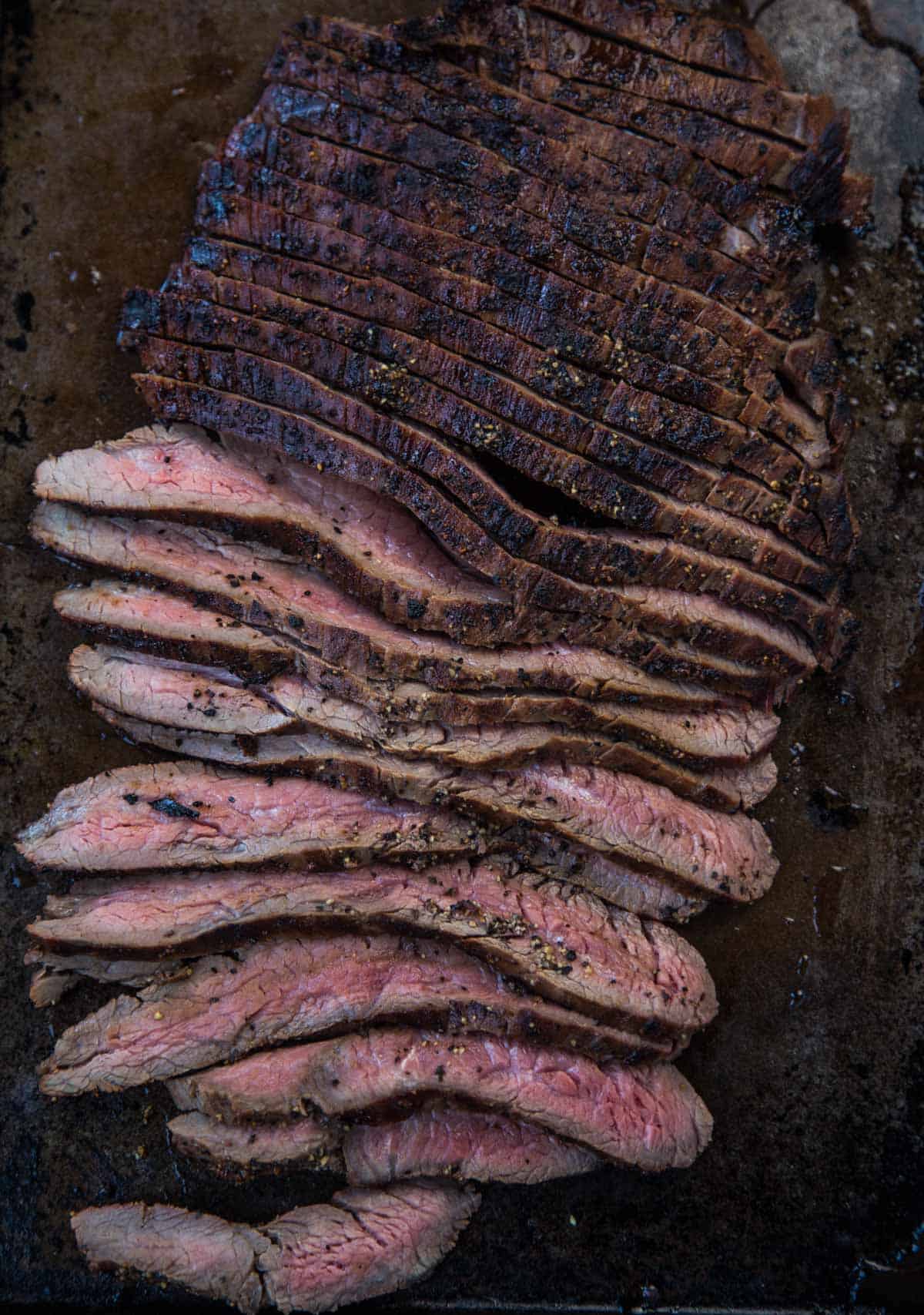 Flank steak is what I think of as “summer” steak! And, I always like how it’s served already all sliced up which makes it great for a get together for a small group or a family